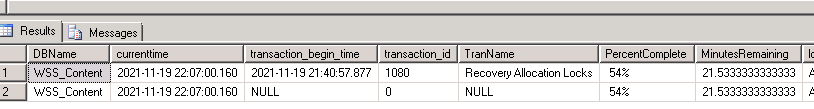EXEC sys.xp_readerrorlog 0, 1, “Recovery of database”;