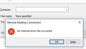 An internal error occurred – RDP